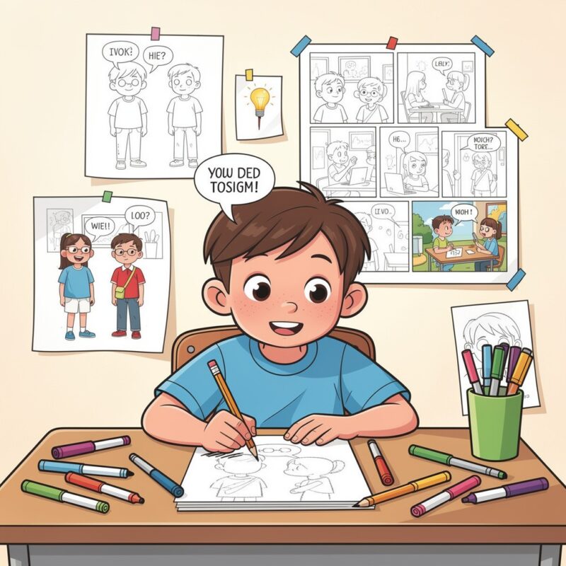 Lukas N. ist in der zweiten Klasse. Am Maltisch im Gruppenraum ist mir (Herr Hadjafahri) aufgefallen, dass er sich gerne selbst Figuren ausdenkt und diese dann in eine Geschichte einbaut, die er dann aufzeichnet. Er zeigte mir selbst gestaltete Figuren, die er mit Bleistift skizzenartig in sein eigenes Buch zeichnete. Darunter Fantasiewesen aus Früchten, Pflanzen […]