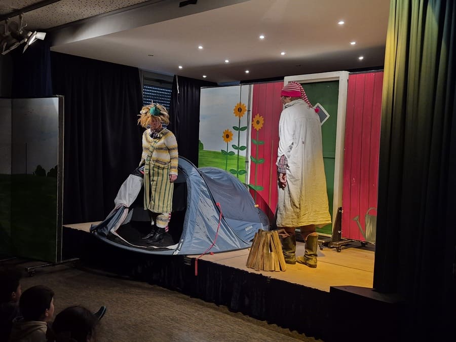 Am Montag, den 24. November, verwandelte sich die Aula der Westhausen-Grundschule in einen kleinen Theatersaal. Das Wittener Kinder- und Jugendtheater war zu Gast und präsentierte das Stück „Petterson zeltet“.