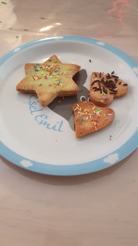Wir waren auf dem Gut Königsmühle. 🏡 Dort haben wir Weihnachtslieder gehört und leckere Kekse gebacken. 🍪🎶 Die Kinder haben die Kekse ganz schön dekoriert. ✨ Es war ein gemütlicher und fröhlicher Tag. 🎁